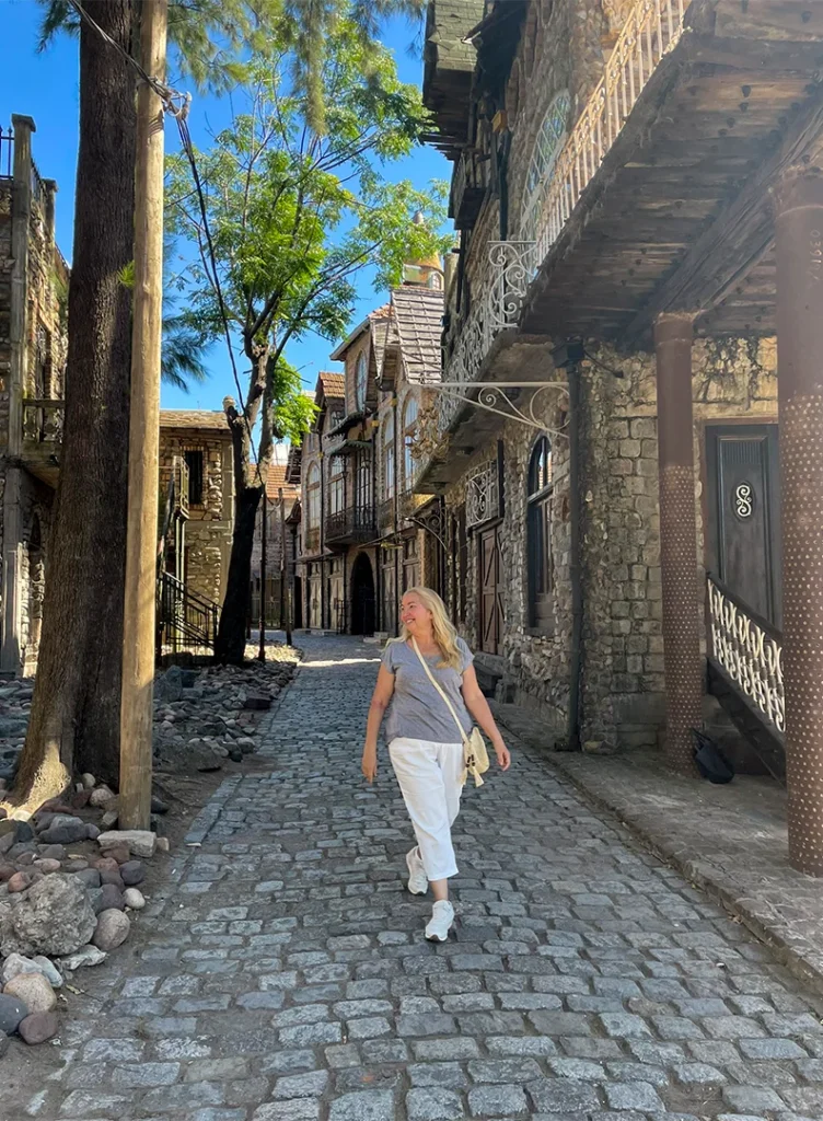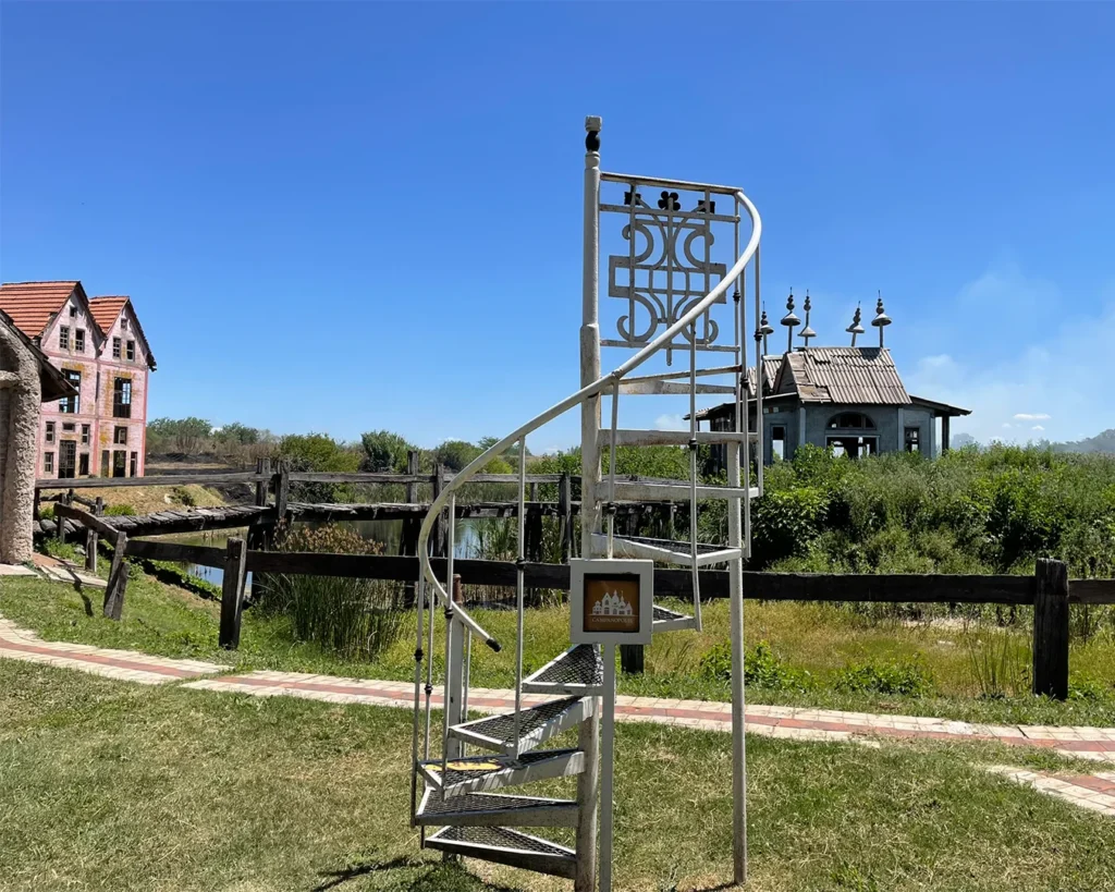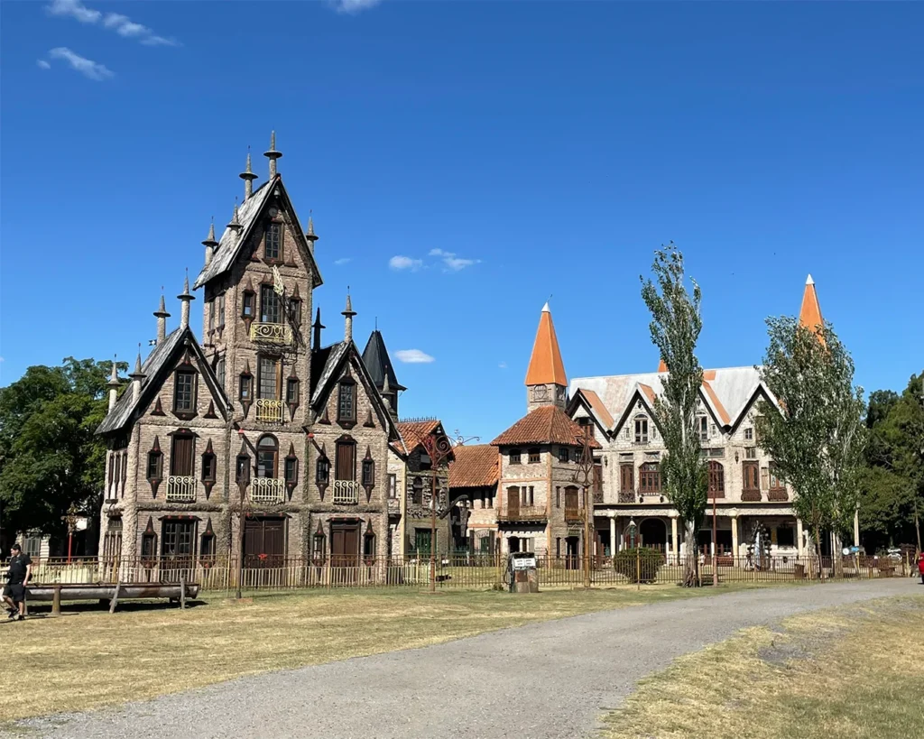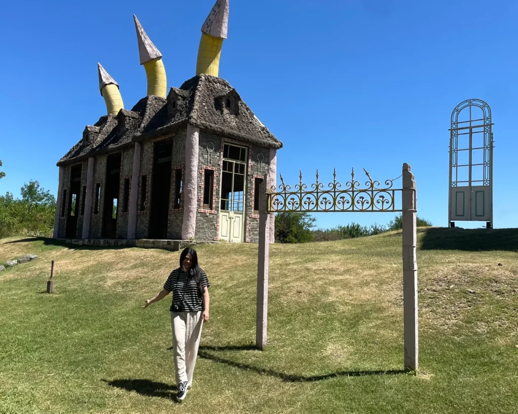 El resultado es un pueblo lleno de pasajes, torres, puentes, casas irregulares, vitrales y construcciones que parecen sacadas de un cuento. Nada sigue una lógica tradicional y justamente ahí está su encanto. Cada rincón sorprende, cada sendero invita a seguir caminando y mirar con atención.