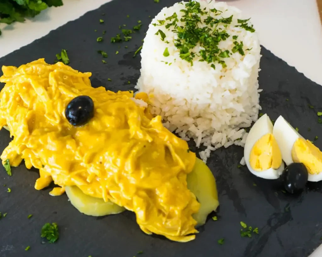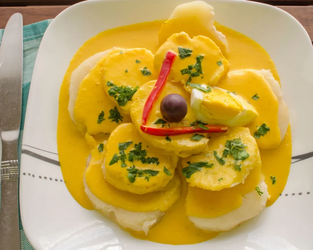 Servida sobre papa hervida y acompañada de huevo y aceitunas, representa la capacidad peruana de transformar ingredientes básicos en preparaciones icónicas.