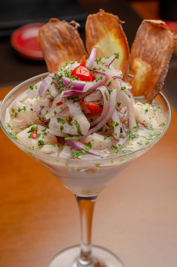 El ceviche peruano es uno de los ejemplos más claros de cómo un plato puede representar a un país entero. El uso del pescado fresco, el limón en su punto exacto, el ají, la cebolla, el camote y la cancha no responde al azar, cada elemento cumple una función, el equilibrio entre acidez, picante, dulzor y textura es lo que define un buen ceviche.