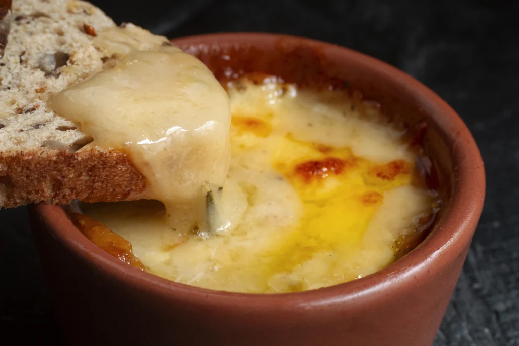 Queso a la parrilla, servido caliente y derretido, con orégano y a veces tomate, este es un plato que se considera como entrada, para compartir mientras llega el plato fuerte.